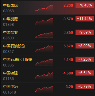 中字头概念股涨幅居前,中铝国际暴涨78%.消息面上,昨日,国务院国资委产权管理局负责人谢小兵在国新办新闻发布会上表示,前期国资委已推动央企把上市公司的价值实现相关指标纳入到上市公司的绩效评价体系中,在此基础上,将把市值管理成效纳入对中央企业负责人的考核,引导中央企业负责人更加重视所控股上市公司的市场表现,及时通过应用市场化增持、回购等手段传递信心、稳定预期,加大现金分红力度,更好地回报投资者。