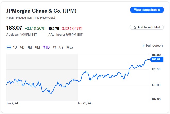 摩根大通去年报告了有史以来最大的年度利润。该行还在去年5月收购了陷入困境的地区性贷款机构第一共和银行(FRCB.US),这有助于提升利润。